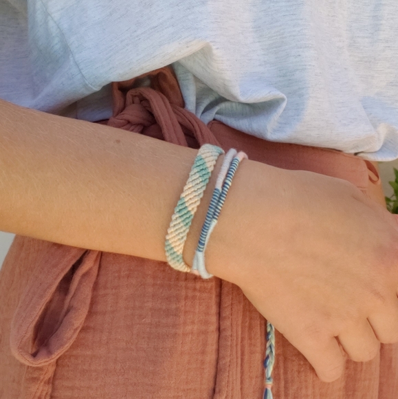 Repeat steps 2 to 4 to add rows of knots. Shop 4 friendship bracelets & more jewelry. You work in a pattern of making 2 knots per strand as you create a diagonal woven pattern.